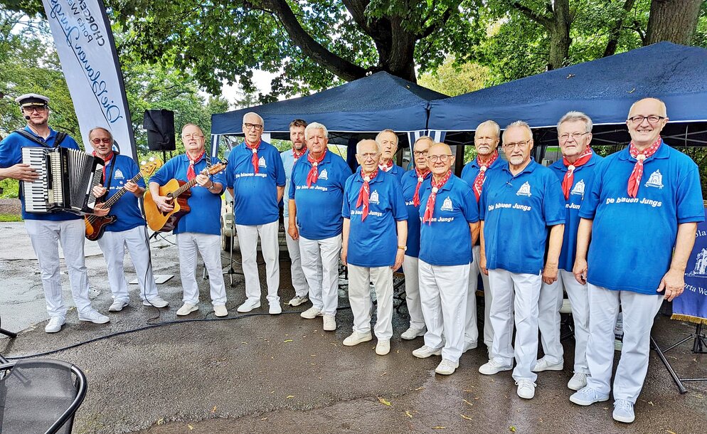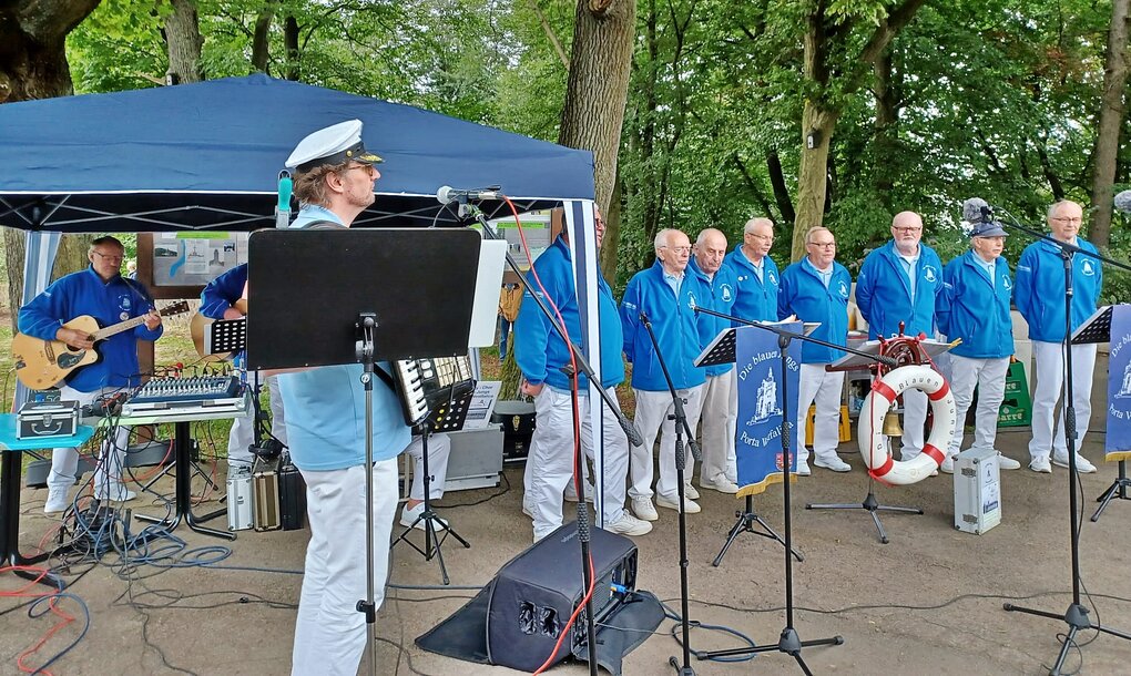 Anlässlich "50 Jahre Stadt Porta Westfalica" feierten die "Blauen Jungs" Porta Westfalica im August 2023